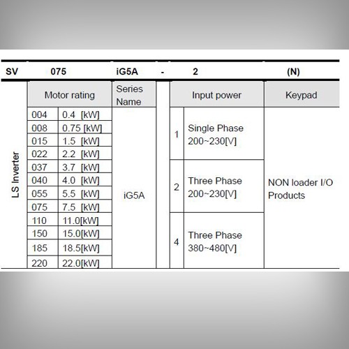 LS Industrial Systems Starvert iG5A AC Inverter for 5.5kW (7.5HP) 230V 3 Ph motor in VxF or Sensorless Vector Control control to 24A.